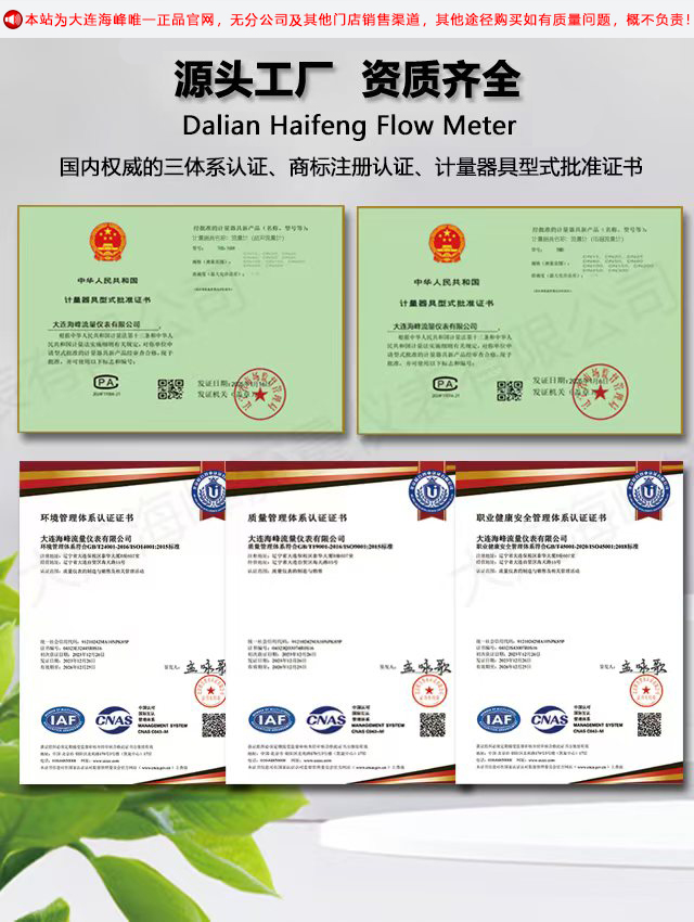 大连海峰流量仪表有限公司是一家开发设计,生产制造流量仪表的高新技术企业,专注流量仪表行业多年。主要生产电磁流量计、超声波流量计、涡轮流量计、罗茨流量计、涡街流量计等,年销售十余万台。公司拥有先进的液体和气体流量标定装置,液体标定最大口径DN2600,气体标定最大口径DN300;我们不断精进,不断创新,降低成本,让利于广大用户,满足不同的市场需求,产品在国内被各行业广泛应用同时也大量出口世界各地,在国内外拥有很高知名度。